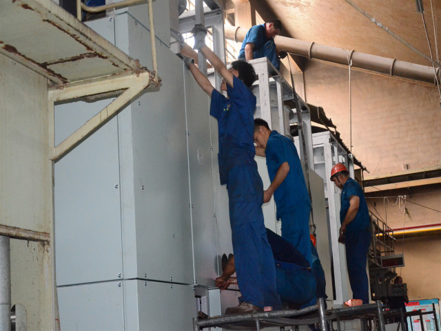 图为施工人员对设备进行安装工作。