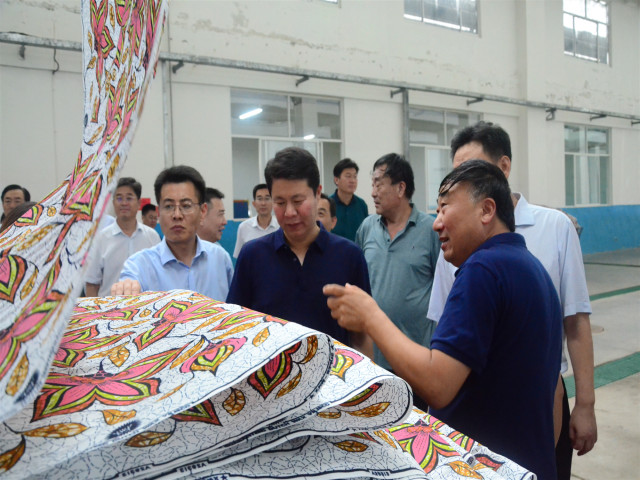 7月25日,滨城区高质量发展现场观摩团领导一行到公司观摩。区委书记、党校校长张宝亮,区委副书记、区长张瑞杰等现场参观了公司科技产业园花布二智能生产车间、工程技术研究院、创意中心等处。