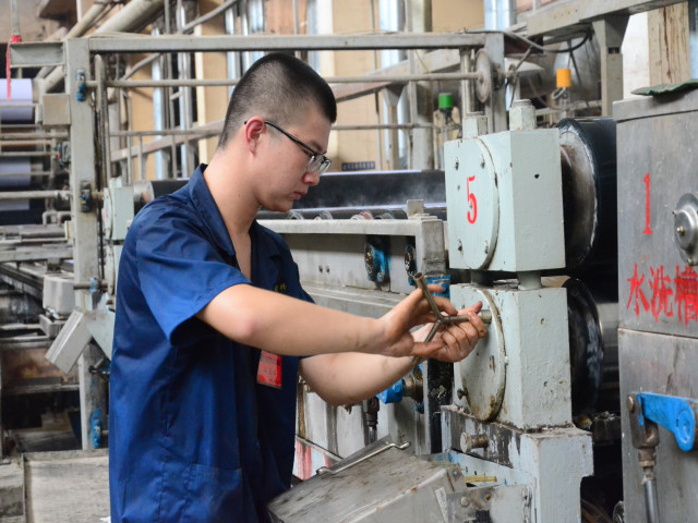 炎炎夏日里,人要时时注意防暑降温,设备亦然。夏季车间温度高,湿度重,对设备的维护保养要比其它季节更重要。一上班,面一车间设备人员李洪凯和师父韩海涛就开始了对车间印染设备的维护保养工作。清洁设备表面、检查紧固零部件、检查更换易磨损零件……内容看似简单,但只要把这些简单的基础性保养工作做好,就能大大减少设备的检修工作量和检修次数,保障设备的顺利运行。