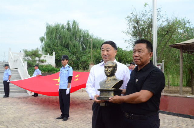 公司党委书记、董事长王力民代表公司,接受纪念园负责人曹文滨代表纪念园捐赠的周恩来总理半身塑像。