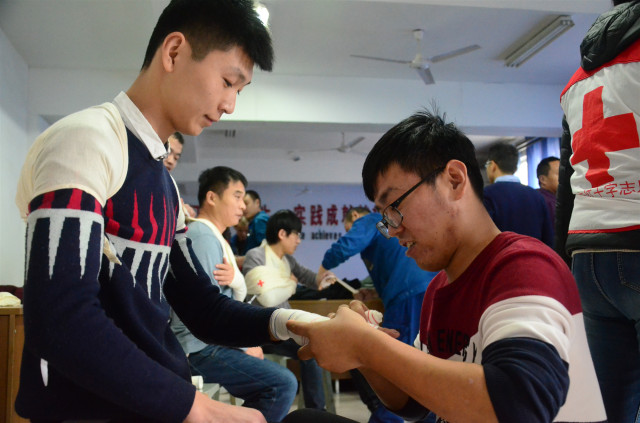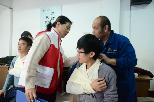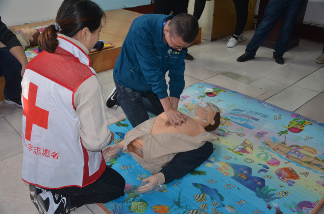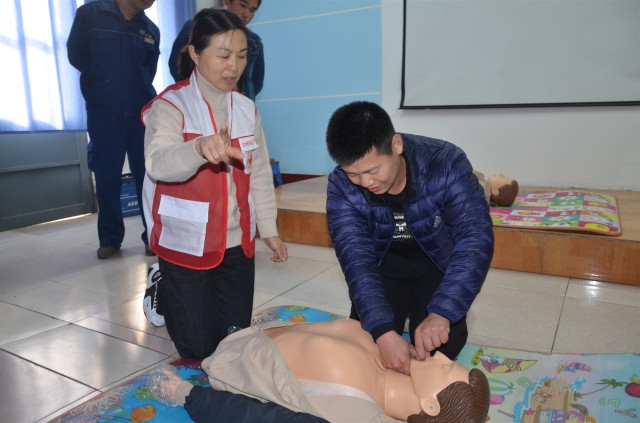 参加培训的安全员通过认真学习和按照要求进行实际操作演练,在学习心肺复苏的操作以及AED的使用,创伤救护止血、包扎、固定、搬运等四大技术的理论与实际操作基础上,还认真聆听了中国红十字会的发展历程以及“三救三献”的工作职责。