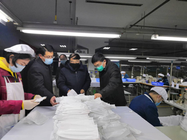 在公司口罩生产现场,公司党委书记、董事长王力民详细介绍了公司在疫情防控方面所做的工作,以及当前民用口罩生产产能和新增产能项目推进情况,同时对公司其他板块的复工复产准备工作做了说明。现场了解情况后,佘春明对公司节日期间组织部分员工提前复工生产口罩,积极践行企业理念和社会责任,助力新型冠状病毒疫情防控阻击战,给予了充分肯定。他表示,口罩作为防护必需品,是各行业返岗复工的重要保障;企业要借力金融杠杆,加快项目立项和设备引进进度,千方百计改善生产条件,尽快提高生产供应能力。