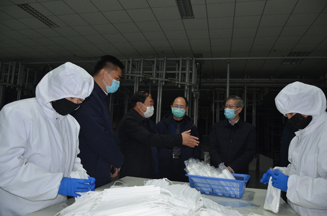 陪同参观过程中,王力民简要介绍了公司在疫情防控方面所做的具体工作,重点介绍了复工后的生产运营、当前口罩生产产能和新增清洁生产项目的进展情况。张忠庆一边仔细地察看生产,一边认真听取企业情况,对公司有序推进生产经营,特别是完善产业发展方面的举措给予了充分肯定,并就企业运行保障等方面的工作做了指导。