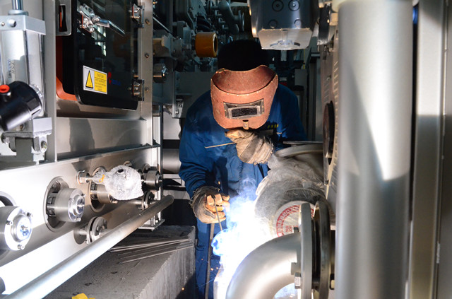 连日来,公司对花布车间实施的技改正在高效推进,新上的双层布铗丝光机安装目前已近尾声;按照技改计划,该项目的安装调试将在21天内完成。
