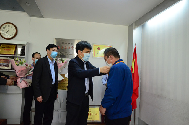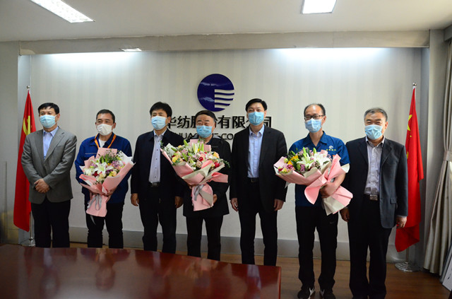 近日,五一劳动节来临之际,滨州市市委常委、秘书长张延廷,市政协副主席、市总工会主席商玉昌,市总工会党组书记、分管日常工作的副主席刘祖庆,市总工会党组成员、副主席、经审委主任王恩东一行,来到william英国中文官网,为滨州市五一劳动奖章获得者、服装车间主任晁金光颁发劳动奖章,向全国纺织行业劳动模范、山东省劳动模范、公司党委书记、董事长王力民,山东省劳动模范、电气高级工程师赵奇生和晁金光三位企业劳模代表赠送鲜花、表达慰问,并与他们进行了深入座谈。