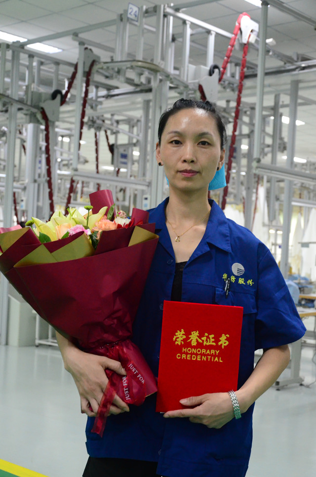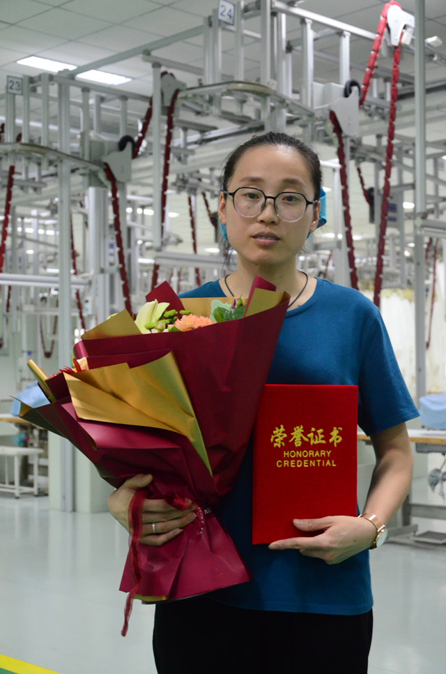 家纺成品车间劳动竞赛总结 优秀员工捧起大花束