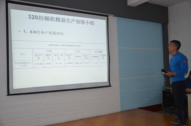 家纺车间主任王旭洲对9月份精益生产情况进行了总结,对取得的成绩进行了表扬,并表示取得的成绩离不开各精益生产小组成员的团结合作。在对成绩进行肯定的同时,他重点对生产中存在的问题进行了深刻剖析,要求大家一定要严格按照标准、流程进行操作,切勿漠视标准规范。他要求各精益生产创客小组在今后的生产中,撸起袖子加油干,继续保持昂扬向上的干劲,生产出令顾客满意的产品,为公司的持续发展保驾护航。
