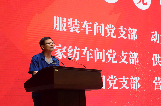 公司纪委书记、质量总监李风明为花布车间党支部的赵兰兰等50名优秀党员颁发荣誉证书;公司党委副书记、供应链总监盛守祥宣读公司党委的表彰决定,并为面料车间党支部的韩小强等17名优秀党务工作者颁发荣誉证书;公司党委书记、董事长王力民为服装车间党支部、家纺车间党支部、花布公司党支部、动力公司党支部、供应链管理党支部、营销发展党支部等6个优秀党支部颁发荣誉牌。大会由公司团委书记陈冰主持。公司党员和员工代表通过精彩的文艺节目,向党抒发了真挚的情感。