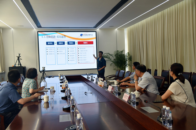 曹学军一行先后参观了花布车间、综合办公区、家纺展厅、研发创意中心、工程技术研究院、智云中心等部门和区域,并听取了公司推进智能绿色工厂建设情况的汇报。