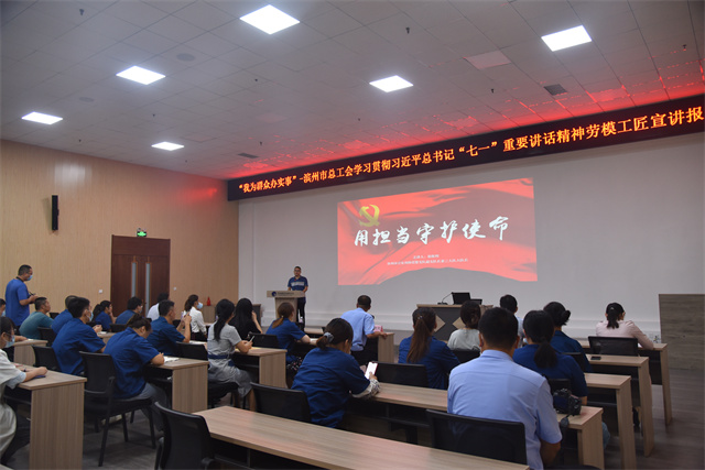 导读:由滨州市总工会主办的“我为群众办实事”学习宣传贯彻习近平总书记“七一”重要讲话精神劳模(工匠)宣讲报告会首次宣讲,在公司会议中心举办。