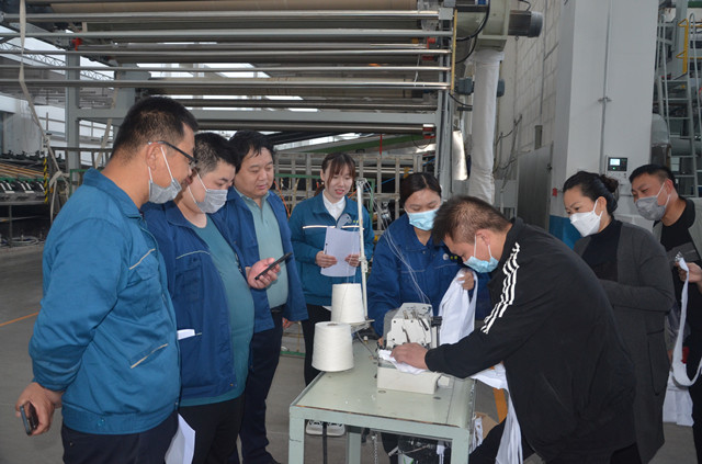 导读:五一劳动节这天一早,公司家纺车间员工便来到车间生产现场,参加车间组织的“喜迎二十大,建功新时代”主题活动——缝头项目技能比武。