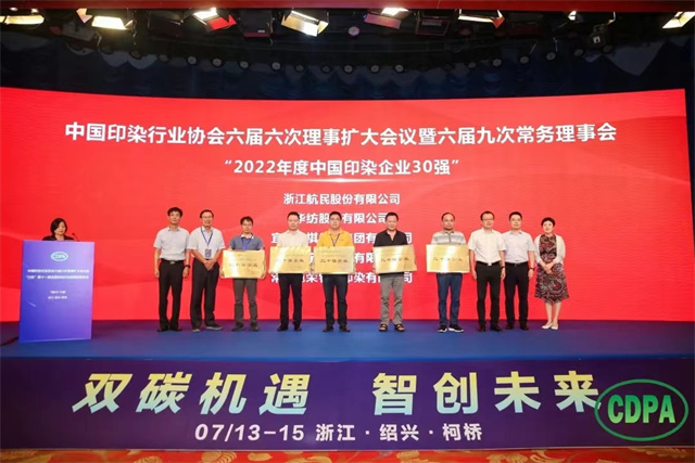 7月14日,中国印染行业协会六届六次理事扩大会议暨六届九次常务理事会在浙江绍兴召开。会上,中国印染协会发布了“2022年度中国印染企业30强”名单,公司以在多方面的综合成效跻身这一行列。
