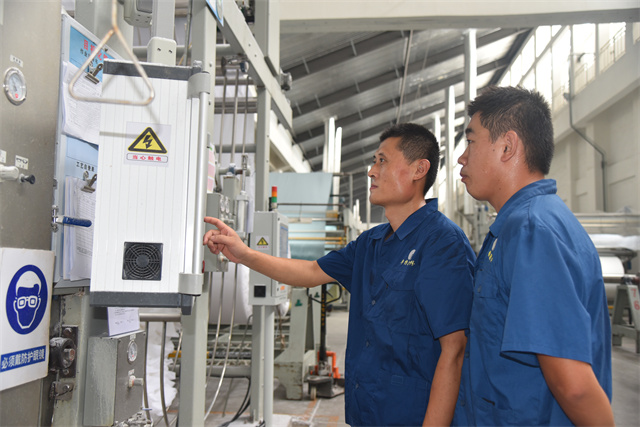 孙镇身着工装,每天巡回在车间前处理机台之间,和畅的机声成了他工作之时的伴奏。落实各机台的计划,组织各机台生产跟进,管控本班的产品质量,对操作规范进行及时检查、现场纠偏与指导培训。他一心扑在工作上,每天忙得不亦乐乎,目标是带领全班19名成员保质保量地完成车间下达的任务目标。他说,“做好生产工作有两件法宝:一个是责任感,一个就是精益生产意识。”在孙镇的心目中,作为公司的管理主线,精益生产需要全体“william英国中文官网人”共同倾心“打磨”,在时间里“磨”出真功夫来,干工作没有捷径,反复推敲,仔细琢磨;经过工作实践的摸爬滚打,才能提升自身本领,才会使生产工作一步步精进。