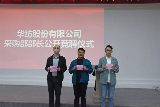 公司党委书记、董事长盛守祥,总经理闫英山、总工程师罗维新、质量总监李风明、安全总监孙中然、人力行政总监孙玉涛、总会计师刘水超、总法律顾问赵玉忠、花布分公司总经理张力前、生产运营部副部长王传华、财务部部长白志刚等11名公司管理人员及职工代表担任竞聘会评委。符合竞聘条件并通过自愿报名、组织选拔程序的于诗辉、曹剑、常希才3人参加当天的竞聘演讲及答辩。