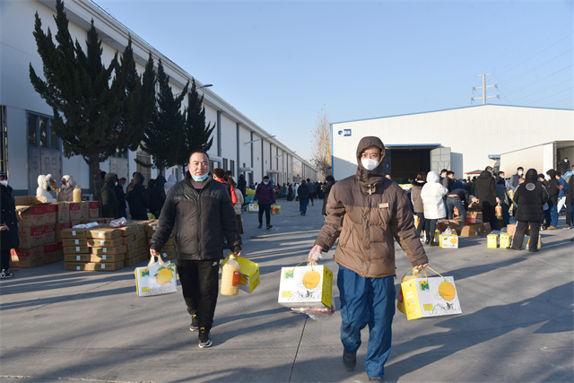 导读:1月16日,公司为感谢员工一年来的辛勤付出,给广大在职员工及退休员工准备了丰厚的节日福利,送上浓浓的关爱与满满的祝福,让广大员工及家属度过一个欢乐祥和的新春佳节。
