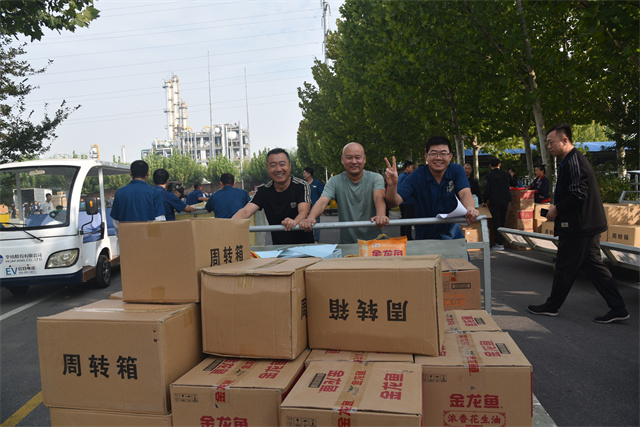 金秋送福,丹桂飘香。为了让每位职工能感受到公司给予的温情,同时也为了感谢大家的辛勤付出和努力,9月26日,在中秋、国庆双节来临之际,公司为广大在职员工及退休职工准备了月饼、花生油、大米、小米等节日慰问品,以体现公司对广大员工的关怀之情。