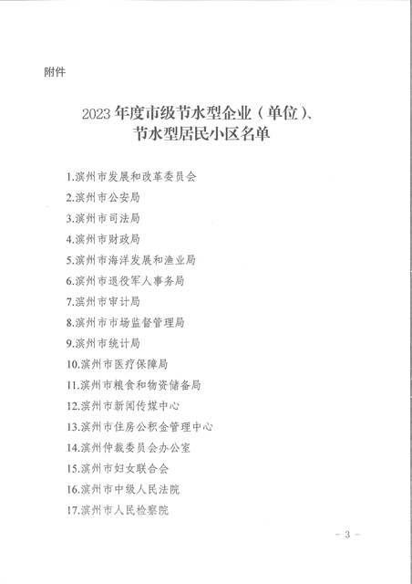 导读:近日,滨州市城乡水务局、滨州市发展和改革委员会、滨州市工业和信息化局、滨州市住房和城乡建设局、滨州市机关政务保障中心发布了《关于公布2023年度市级节水型企业(单位)、节