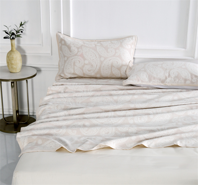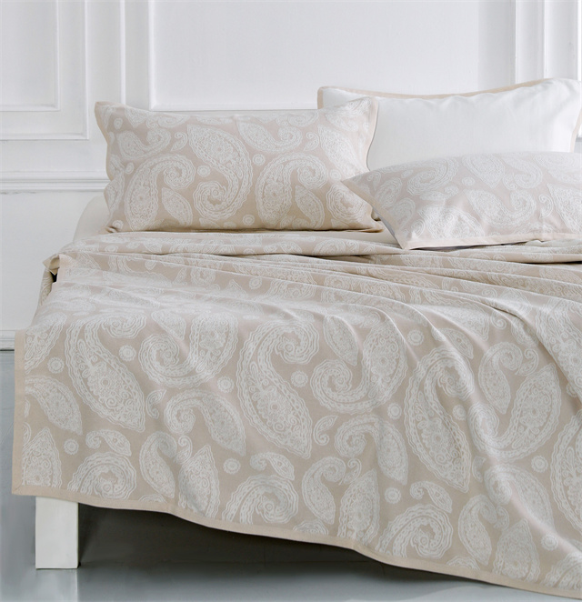 汉麻提花凉席件套以“程朱理学”中强调的学以致用,遵守自然规律,崇尚自然之理的深邃思想作为指引。在产品设计方面,独具匠心地采用了佩斯利提花花型,儒雅深沉的中国文化与图案繁复的国际化花纹相互碰撞,奇妙地展现出中西结合的神秘而又迷人的独特气质;在技术层面,采用了《麻织物亚麻织物柔软滑整理方法》柔软专利技术,经过处理的麻织物手感柔软富有弹性,解决了麻织物以往手感粗硬的难题;在功能方面,具备抗菌防霉、舒爽散热的出色特性。产品在传承悠久文化的基础之上,尤其突出了创意性和功能化。从原材料的精心选取到终端产品的设计生产,全程遵循工匠精神,能够出色地满足消费者个性化、品质化、情感化的多元消费需求,为消费者带来前所未有的舒适体验和文化享受。