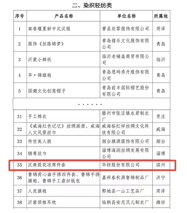 “山东手造”是省委、省政府发挥文化资源丰厚、传统工艺品类齐全的优势,创新打造的文化创意区域公共品牌,是塑造山东文化创意产业发展新优势的重要抓手。按照省委、省政府关于推进“山东手造”工程的部署安排,本次“山东手造·优选100”遴选活动共分为传统美术类、染织轻纺类、文玩用品类、刻塑铸造类、木作家具类、传统食品类六大类。其中,公司家纺床品产品——汉麻提花凉席件套作为染织轻纺类,成功入选2023“山东手造·优选100”名单,这无疑是对公司产品品质与工艺的高度认可。