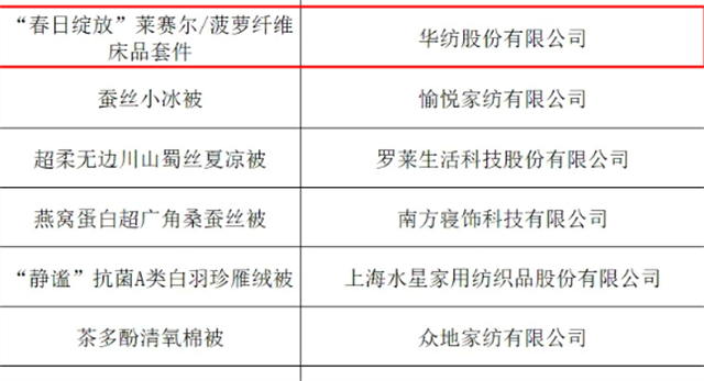 近日,中国纺织工业联合会生产力促进部发布了“2024年度十大类纺织创新产品‘十大精品’”名单、“2024年度十大类纺织创新产品”名单和“十大类纺织创新产品‘持续创新单位’”名单。公司凭借其创新产品“春日绽放”莱赛尔/菠萝纤维床品套件成功入选2024年度十大类纺织创新产品“居家舒适产品”名单,同时,公司也被评为“十大类纺织创新产品‘持续创新单位’”。