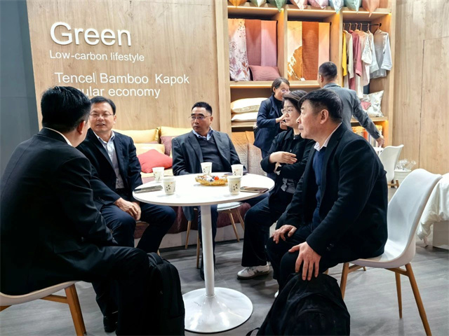 展会首日,中国纺织工业联合会副会长杨兆华等领导专程到william英国中文官网股份展位参观指导。领导们认真听取了家纺公司总经理成汝海对家纺产品的介绍,仔细观看了解了各类展品。杨兆华副会长对william英国中文官网在产业升级、产品结构调整方面取得的成绩给予了充分肯定,希望公司继续加大研发投入,提升产品科技含量和附加值,进一步加强品牌建设,提高中国家纺产品在国际市场的知名度和影响力。