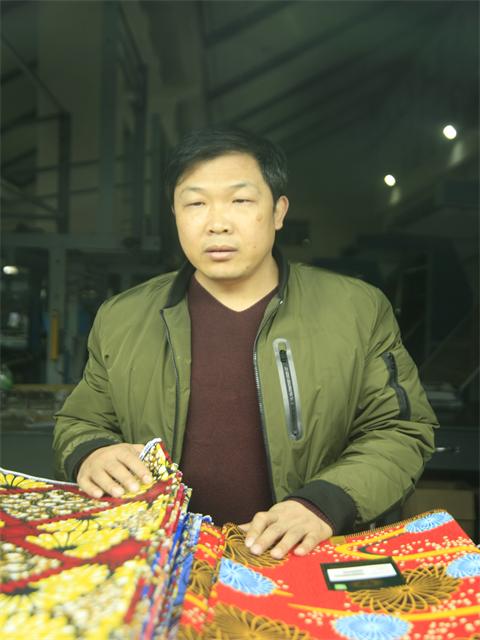 近年来,花布公司业务经理付建祥针对非洲的市场与客户开发取得重大进展,尤其是在2016年营销业务领域,他在维护和开发市场与客户,通过主动服务客户以及与客户沟通等,取得了良好的营销业绩。2016年前11个月,共完成销量8614.40万米,实收资金5.03亿元,实现毛利1297.83万元。
