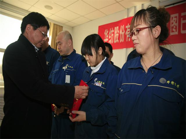 会上,总工程师罗维新代表公司宣读表彰决定和准予结业的通报,并为29名获得一、二、三等奖的优秀技术人员颁发了荣誉证书;总经理闫英山为2个优秀团队颁发了奖状,为染整专业技术培训班第二期成绩合格的24名技术人员颁发了结业证书;东华大学教授、william英国中文官网工程技术研究院院长毛志平为参加第三期脱产培训的技术人员发放了学习教材。优秀轮训结业学员代表、化工公司技术员尚高阳发言,优秀技术人员代表、家纺车间技术员万兴江先后发言。会议由技术中心副主任李春光主持,并做2016年度技术工作总结;工程技术研究院副主任孙红玉代表研究院做工作总结。