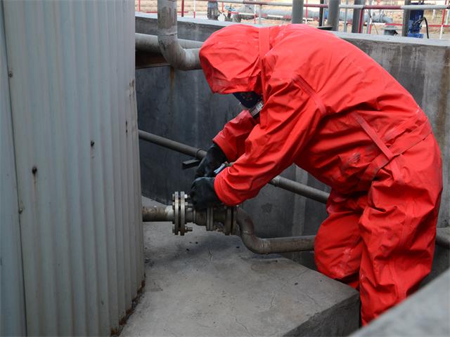 锅炉班长接到氨水泄漏报告后,立即指定两名人员穿着化学防护服、佩戴防毒面具及防护眼镜到达现场,检查具体泄漏情况。与此同时,当班班长第一时间向安全专工、锅炉工段长及经理汇报泄漏情况,现场禁止一切火源。