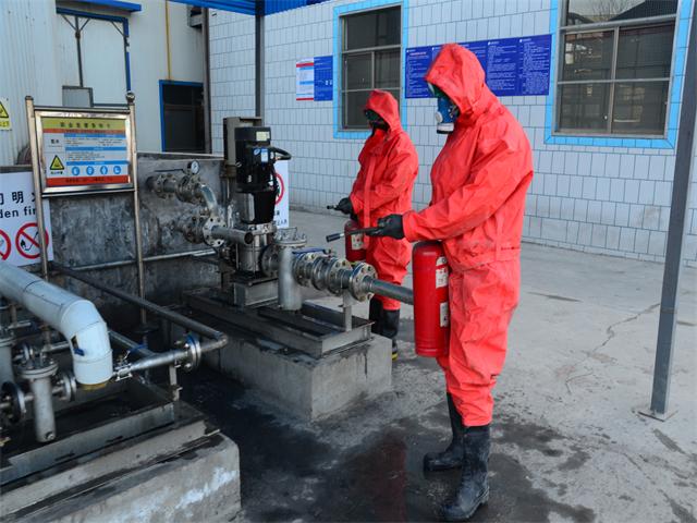 这一幕正是动力公司2月20日进行防泄漏演练时的情形。当日,动力公司按照公司安保部制定的年度应急预案演练大纲,进行了一次氨水泄漏应急处理演练。同日,面一车间进行了导热油泄漏现场处置演练。经安保部和部门主管测评,两次演练均符合流程标准,达到了预期效果。
