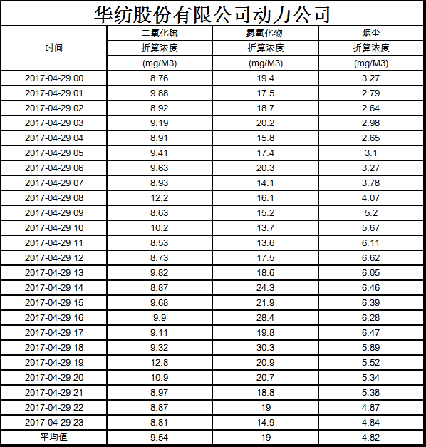 烟气排放数据信息公开2017.4.29数据