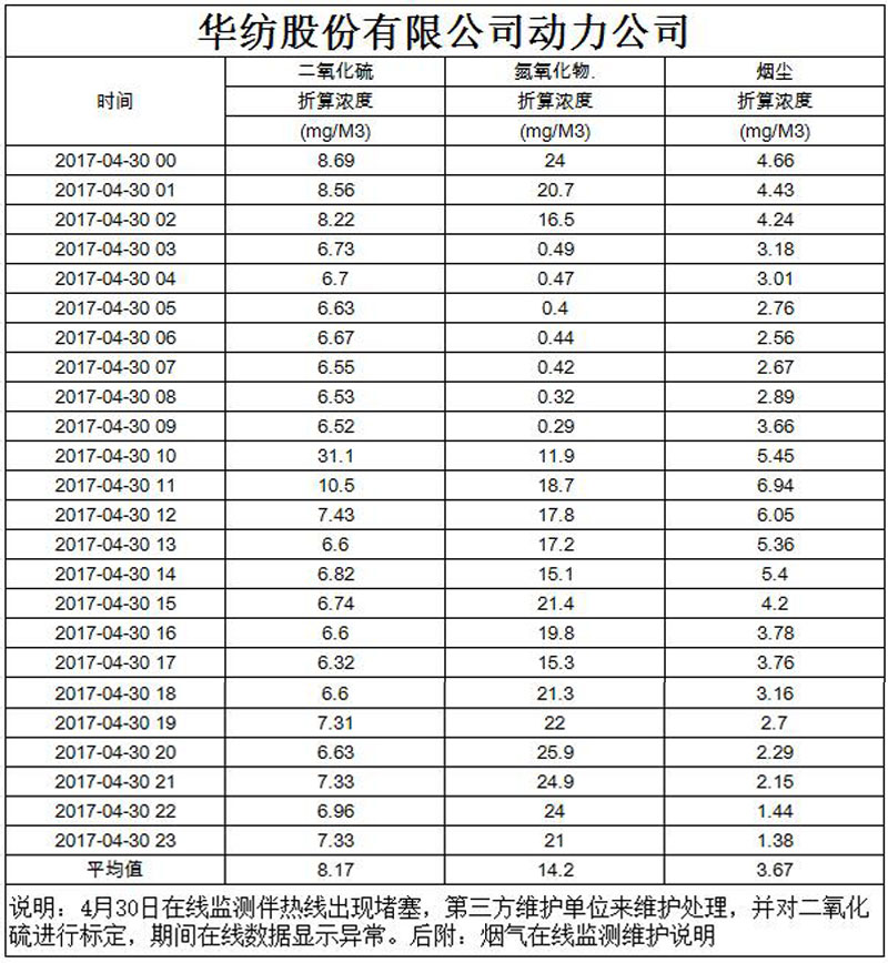 烟气排放数据信息公开2017.4.30数据