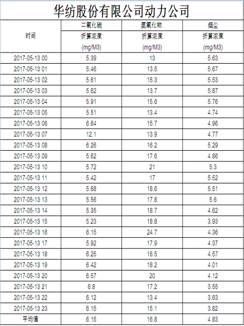 烟气排放数据信息公开2017.5.13数据