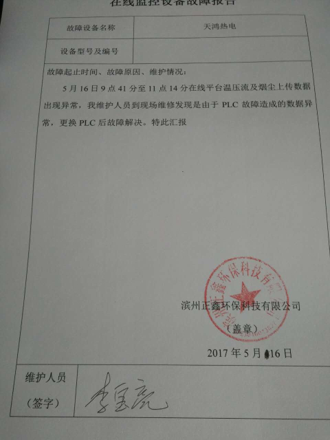 烟气排放数据信息公开2017.5.16数据