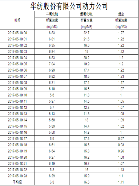 烟气排放数据信息公开2017.5.18数据