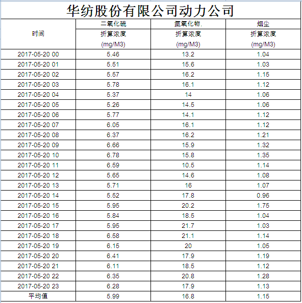 烟气排放数据信息公开2017.5.20数据