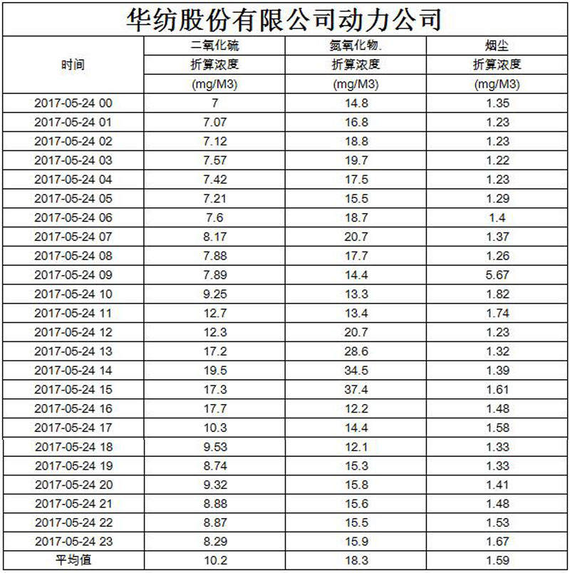 烟气排放数据信息公开2017.5.24数据
