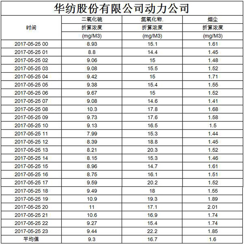 烟气排放数据信息公开2017.5.25数据