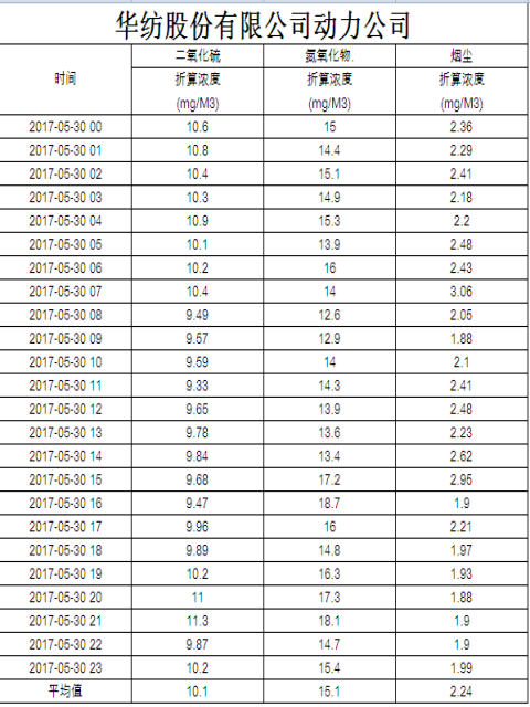 烟气排放数据信息公开2017.5.30数据