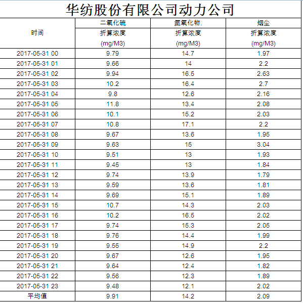 烟气排放数据信息公开2017.5.31数据