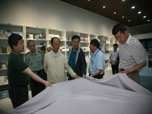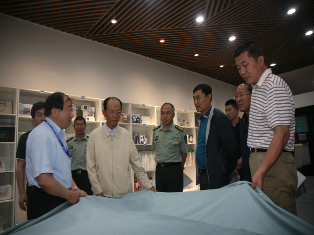 市人大常委会副主任吕德章,市政协副主席吴国瑞、赵建明,滨州军分区参谋长许增全,公司党委书记、董事长王力民,副总经理孙中然等,陪同张文台上将一行参观了家纺展厅等处所。