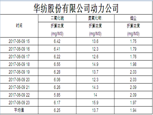 烟气排放数据信息公开2017.6.9数据