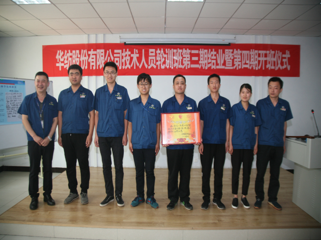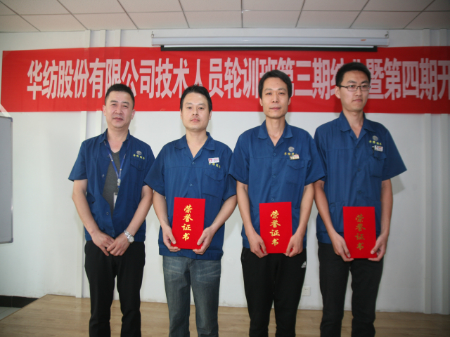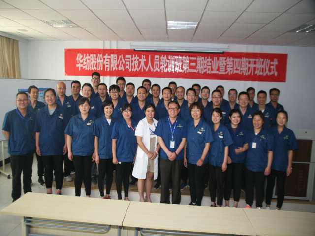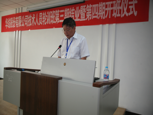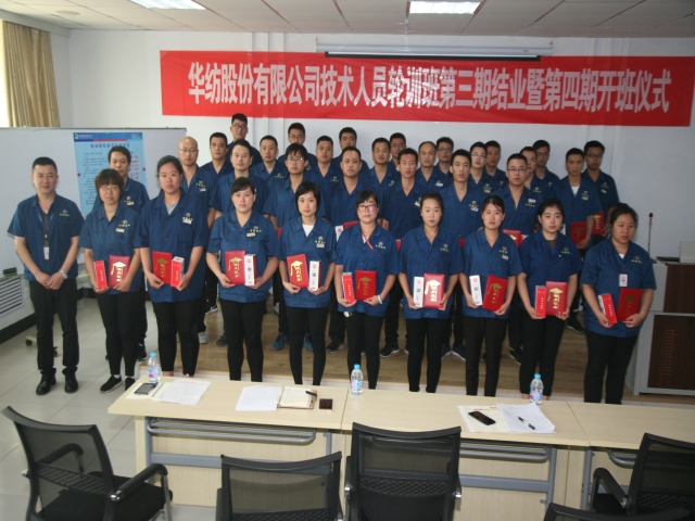 6月18日,公司专业技术轮训班第三期结业暨第四期开班仪式,在公司工程技术研究院举行。仪式上,工程技术研究院副院长孙红玉对第三期轮训工作进行了总结;总工程师罗维新宣读了《关于对染整专业技术培训班(第三期)马士国等35人准予结业的通报》、《关于对染整专业技术培训班(第三期)优秀团队、优秀学员的表彰决定》、《关于对染整专业技术培训班(第四期)学员组成的通报》;总经理闫英山为第三期轮训班结业学员颁发结业证书,为优秀团队花二车间小组及马士国、李义、陈爱民等三名优秀学员颁发奖状证书,为第四期学员颁发了专业学习书籍;王金亮、马士国、商晓峰分别代表往期学员、本期学员和下期学员发言;公司党委书记、董事长王力民围绕坚持“求学、求知、求真、求实”的作风信条做了重要讲话。