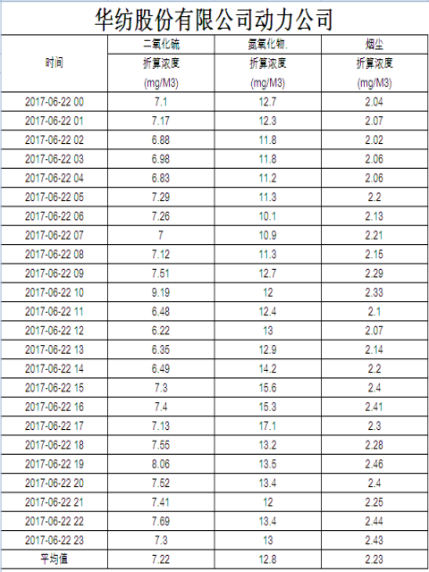 烟气排放数据信息公开2017.6.22数据