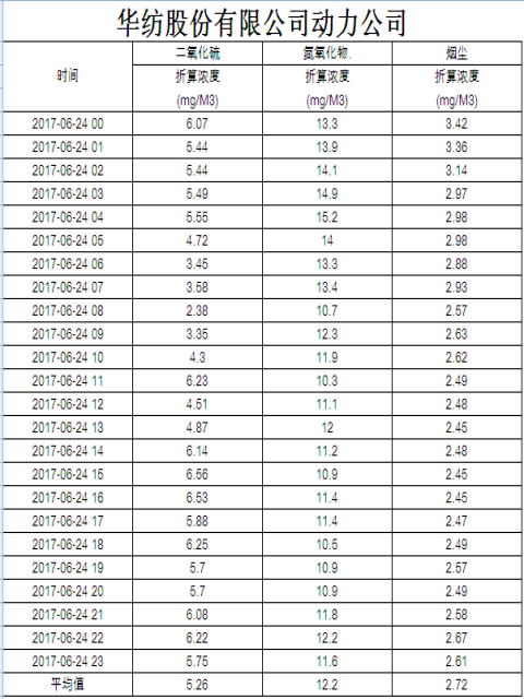 烟气排放数据信息公开2017.6.24数据