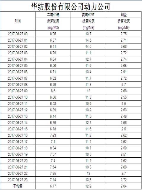 烟气排放数据信息公开2017.6.27数据