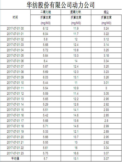 烟气排放数据信息公开2017.7.1数据