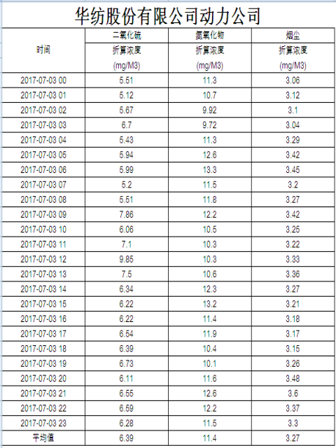 烟气排放数据信息公开2017.7.3数据