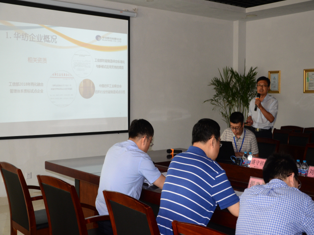 汇报结束后,王力民带领审核组一行现场参观了公司工程技术研究院、创意中心、花布二车间配料室、花布展厅、花布产品开发部、中控室、HFCPS中心等部门和生产现场,并就智能制造在相关方面的应用做了现场演示。