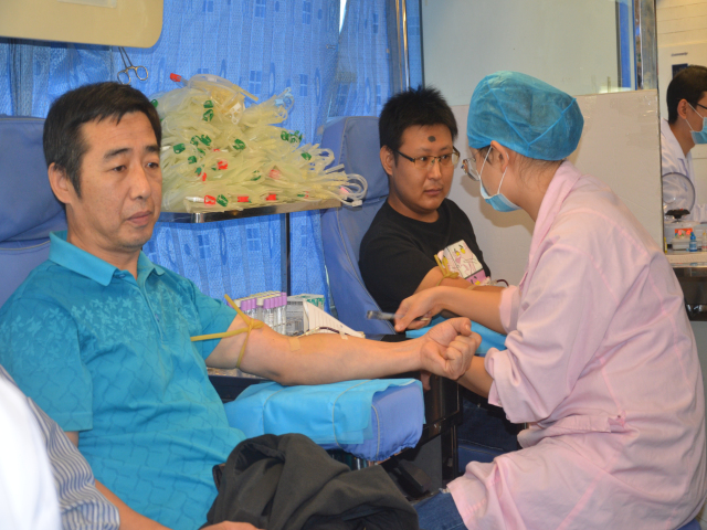 9月29日一大早,来自物资管理部、各印染车间、服装车间、人力行政体系、热力公司等各体系部门的员工,在公司东侧广场排起了长队,滨州市中心血站的献血车也早早的到来,接受公司员工的无偿献血。
