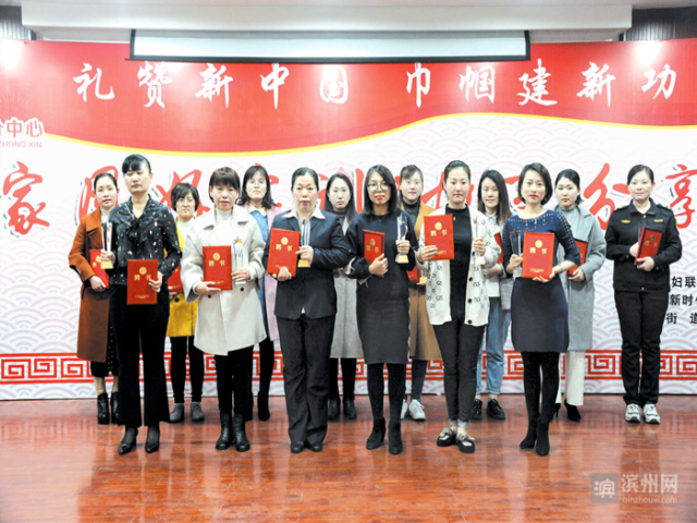 导读:日前,公司员工代表服装车间李艳艳参加了由滨城区北镇街道开展的“礼赞新中国•巾帼建新功——好家风好家训”故事分享会。